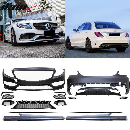 2015-2016 Benz W205 C63 Style Full PDC Front +Rear Bumper+Side Skirts