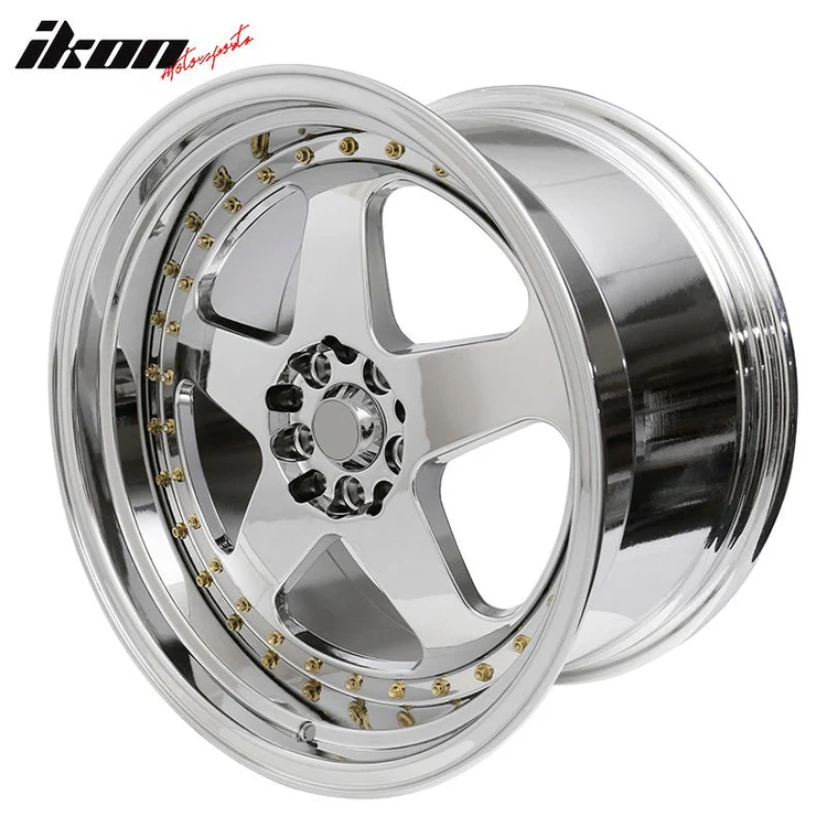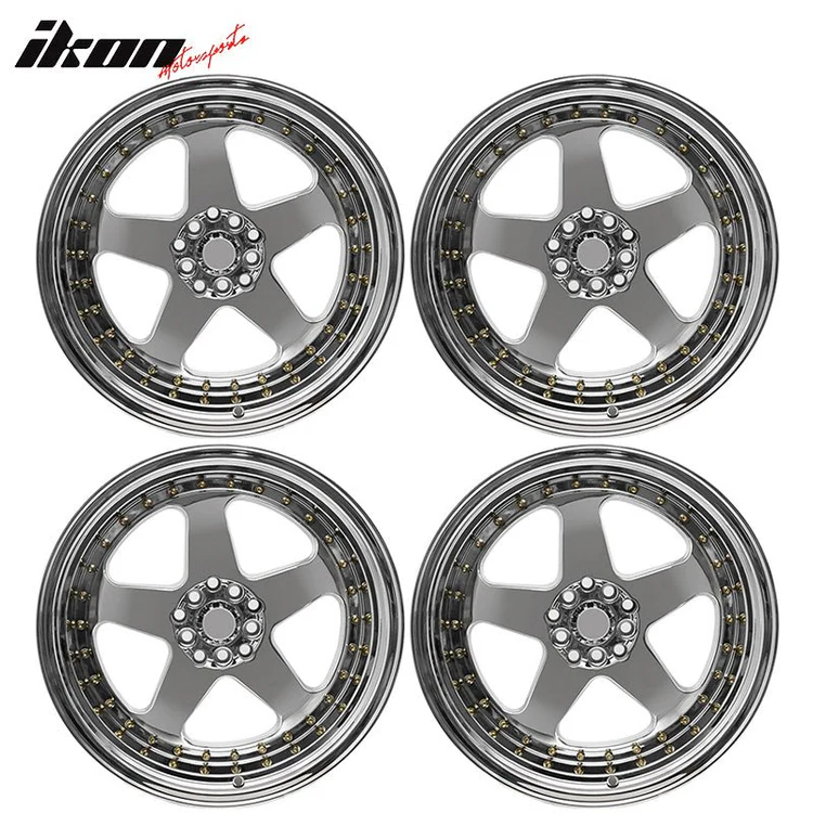 (4) 18X9.0 +30 5X100 / 5X114.3 Step Lip 5 Spoke Wheels Rims – Chrome